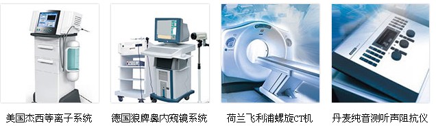 拥有全球高端耳鼻咽喉治疗仪器:半导体激光治疗仪、超声雾化器、 WOLF耳鼻喉内窥镜系统、 美敦力耳鼻喉治疗台、 美敦力动力系统、消融系统、耳鼻咽喉综合治疗台、功能性鼻窦内窥镜技术、 杰西消融系统等一系列前沿检验仪器设备。一流的检验、高精尖的诊疗设备和资深的耳鼻咽喉科医学医生,秉承严谨求实的科学态度和诚信求精的行医宗旨,全心致力为患者打造较好的鼻窦炎诊疗效果。